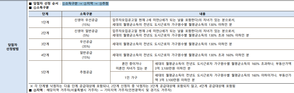 - 순위별 우선공급 → 소득 낮고 자녀 많을수록 유리
