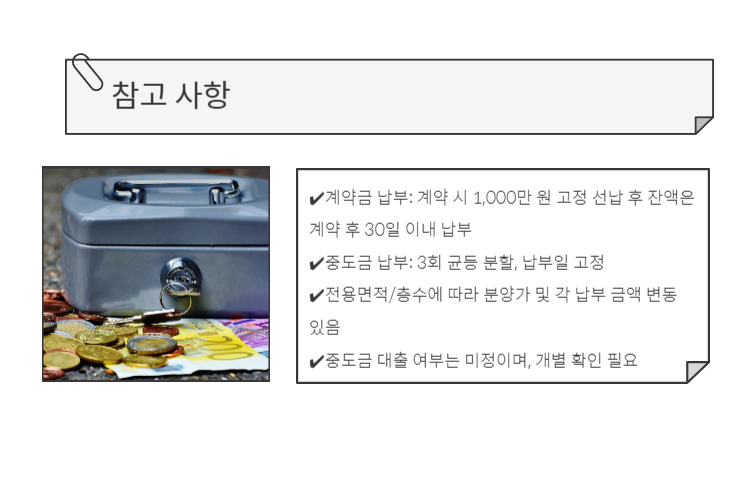 - 중도금 대출 여부는 미정이며, 개별 확인 필요