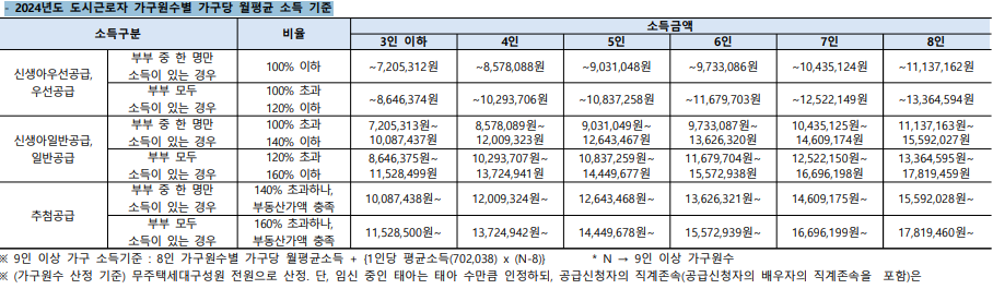 - 소득기준: 도시근로자 월평균소득 130~140% 이하