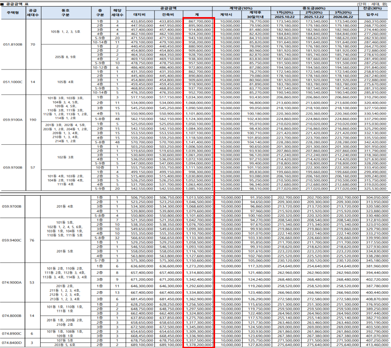 - 중도금 납부: 3회 균등 분할, 납부일 고정