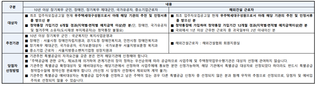 ✅ 특별공급 유형별 자격 정리