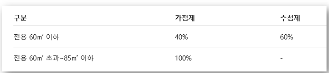 - 가점항목: 미성년 자녀 수 + 입주자저축 가입기간 + 무주택기간