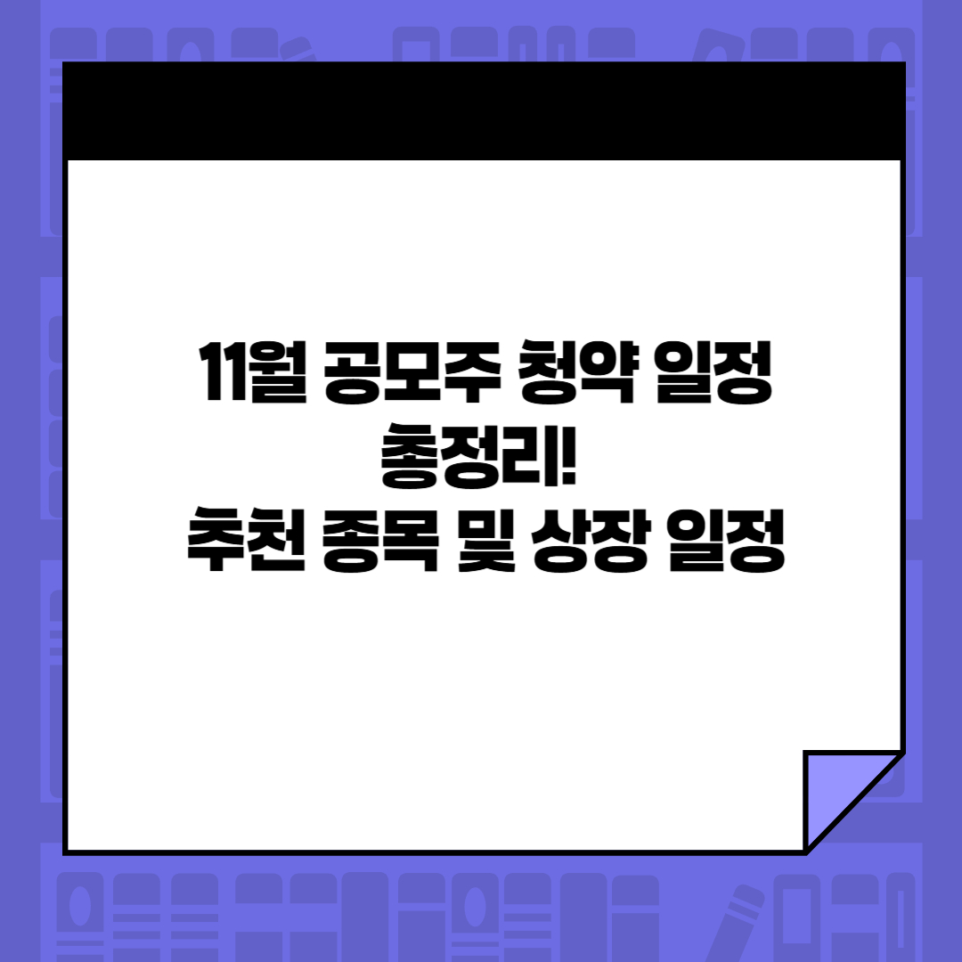 이번 포스팅에서는 11월 공모주 청약 일정에 대해 알아보고, 주목할만한 추천 종목과 상장 일정까지 함께 알아볼테니, 청약 일정 잘 챙기시며 투자하시길 바랍니다!