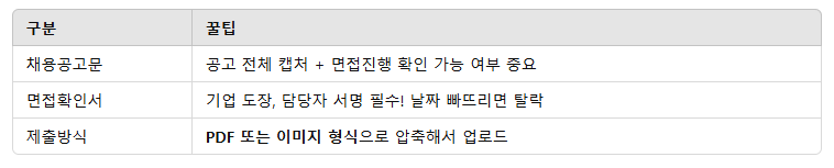 📌 면접 확인서 원본, 또는 이메일/문자 등 캡처 이미지 제출