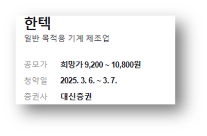 | 한텍 수요예측 결과 및 공모가 (청약 일정) (0) | 2025.03.06 |