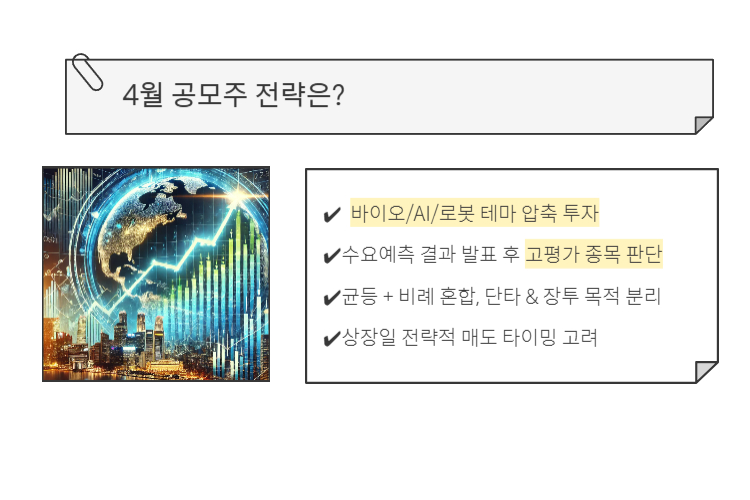 바이오, AI, 로봇 관련주는 장기 성장 기대감이 높은 만큼, 시장 트렌드와 맞물린 테마 종목을 선별해서 집중 청약하는 전략이 유효합니다.