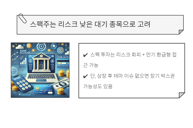 4️⃣ 스팩주는 리스크 낮은 대기 종목으로 고려