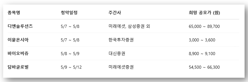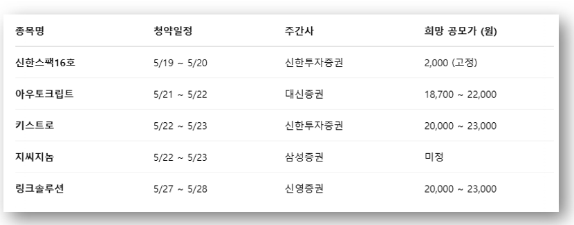 ✅ 5월 공모주 청약 일정표