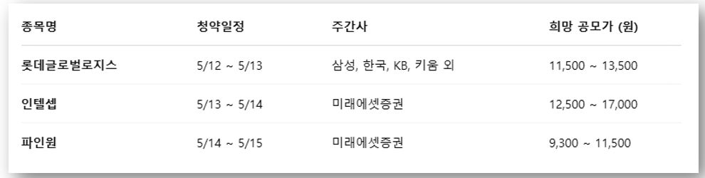✅ 5월 공모주 청약 일정표