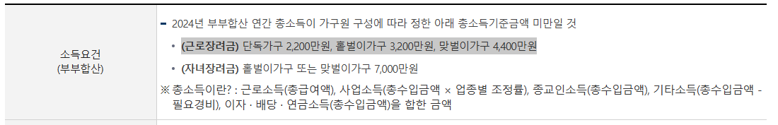 2024년 귀속 연소득 기준이며, 부부합산 기준입니다.