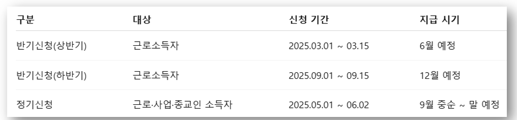 • ✅ 지급일은 신청 유형에 따라 6월/9월/12월