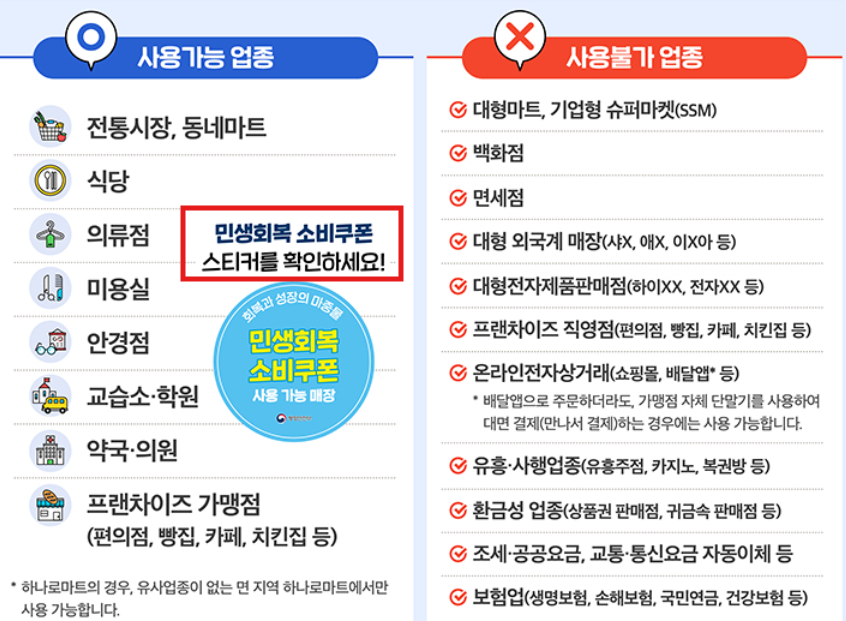 민생회복 소비쿠폰 사용 가능처와 제한 업종