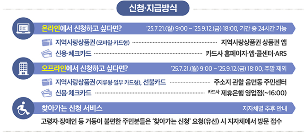 - 신청 방법: 온라인(카드사/앱), 오프라인(읍면동 주민센터)
