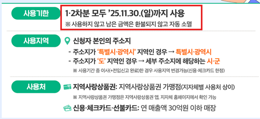 - 사용 기한: 2025년 11월 30일(일)까지 (미사용 금액은 소멸)