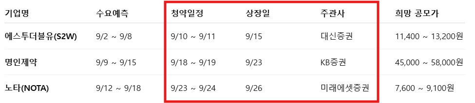 1. 9월 공모주 청약 일정표
