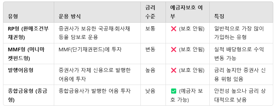 💡 TIP: 원금보장을 원하면 종합금융형 선택, 높은 금리를 원하면 발행어음형이나 RP형 선택이 유리하다.