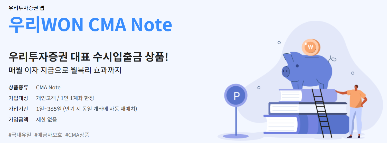 👉 우리WON CMA Note(종금형)은 예금자 보호가 가능한 CMA 통장입니다. 수익률도 2.60%로 높은 편입니다.