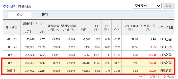 • 2025년 연간 예상 매출: 29조 2,307억 원