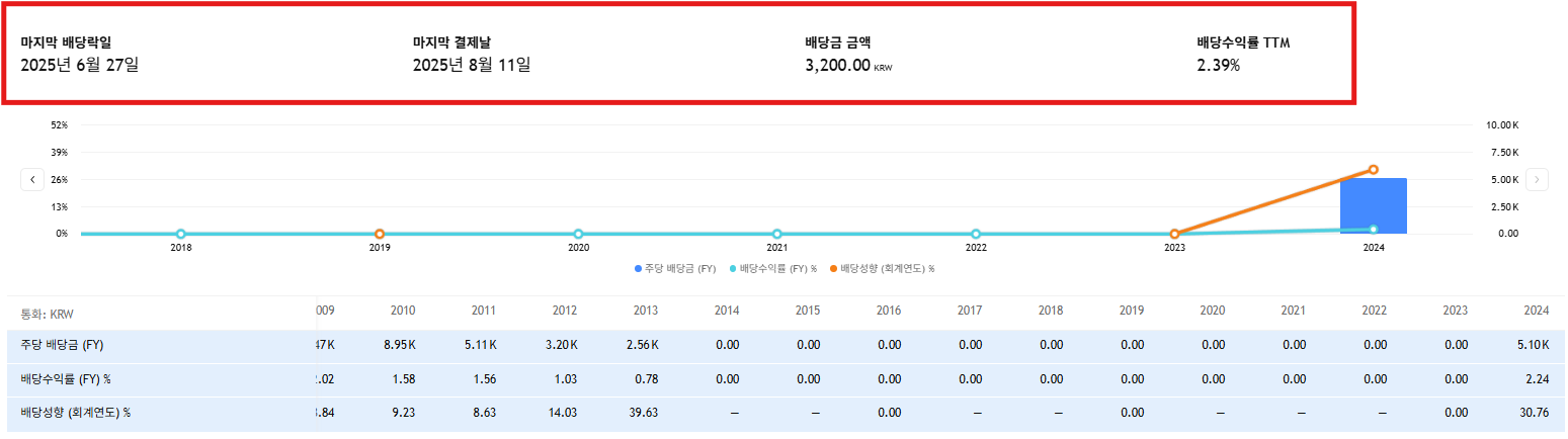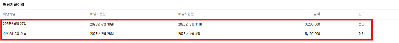 - 중간배당: 3,200원 (8월 11일 지급 완료)