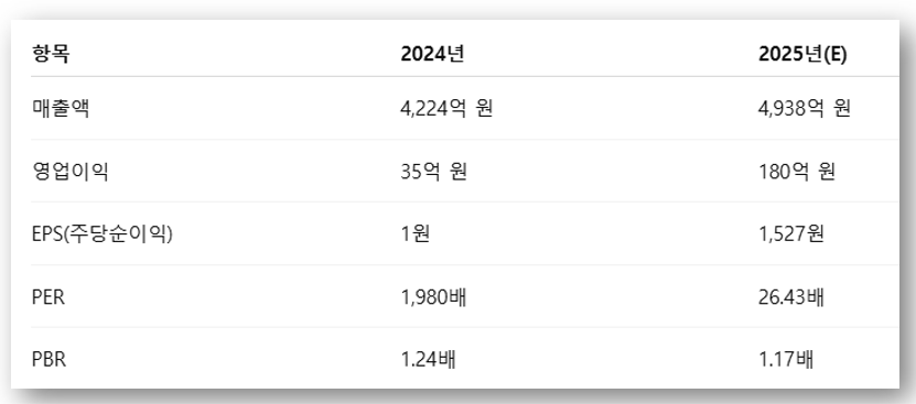 - 2025년 예상 영업이익 180억 원, 당기순이익 170억 원