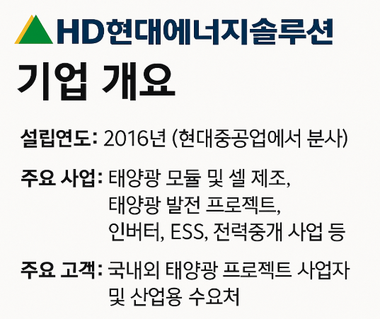 - 주요 사업: 태양광 모듈 및 셀 제조, 태양광 발전 프로젝트, 인버터, ESS, 전력중개 사업 등