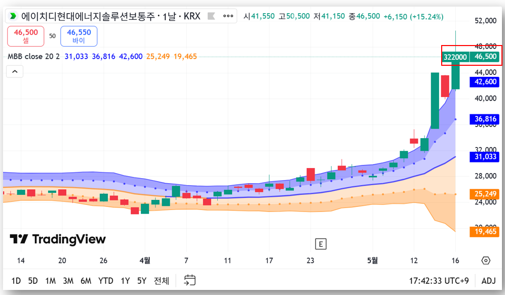 2025년 5월 기준, HD현대에너지솔루션은 연일 52주 신고가를 경신하며 강한 랠리를 보여주고 있는데요,주가가 5만 원에 도달하며 단기간에 30% 이상 상승한 이유를 한번 살펴볼까요?