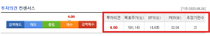 📌 평균 목표 주가: 약 581,000원