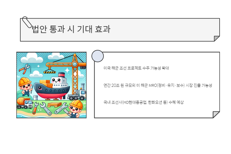 👉 이 법안이 통과될 경우 HD현대중공업은 미 해군과의 협력을 통해 추가적인 수주를 확보할 가능성이 큽니다.