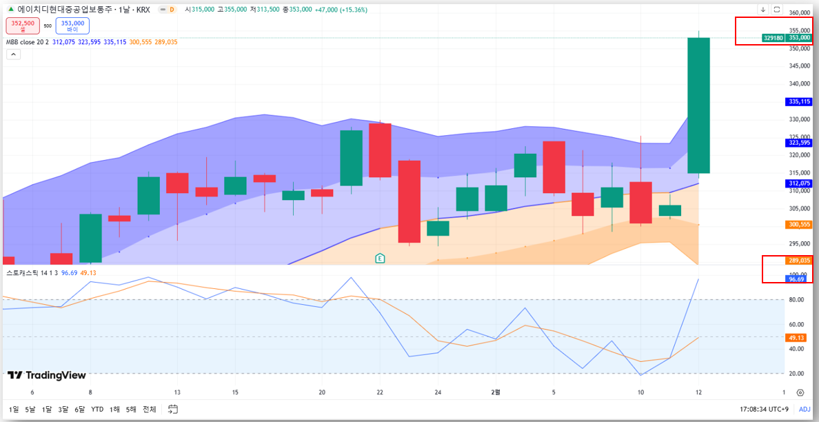 • 2월 12일: 장 초반부터 강세, 최고 353,000원(+15.36%) 기록