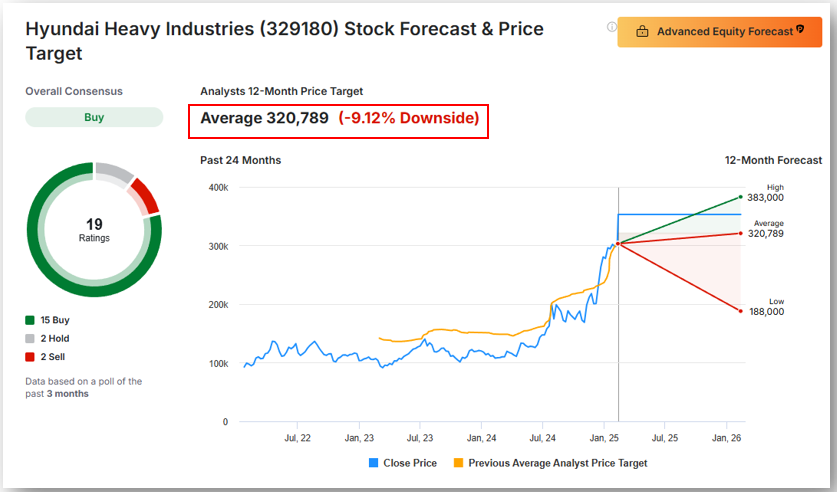 ⬇️HD현대중공업의 목표주가를 자세히 볼까요?
