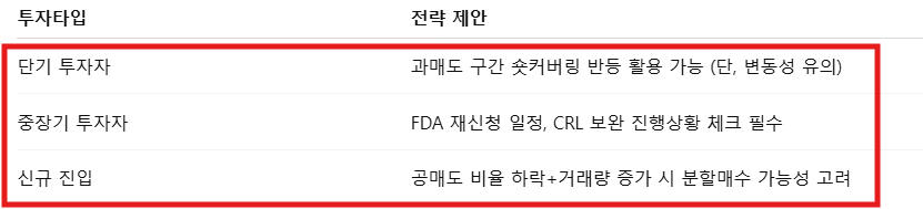 📌 아직 실적 기반 상승이 아닌 만큼, 임상/허가 일정에 따른 변동성은 주의해야 합니다.