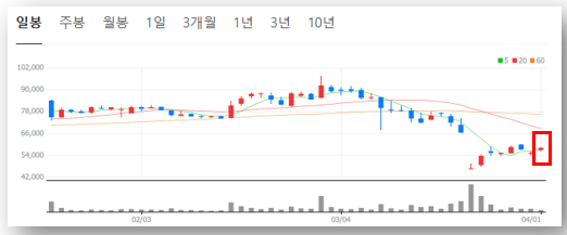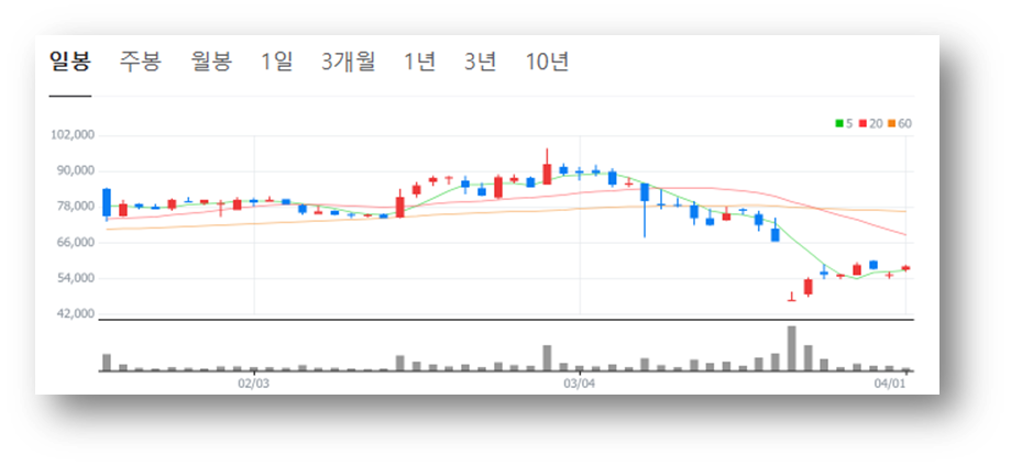 📌 52주 최고가: 114,300원 → 55% 이상 하락