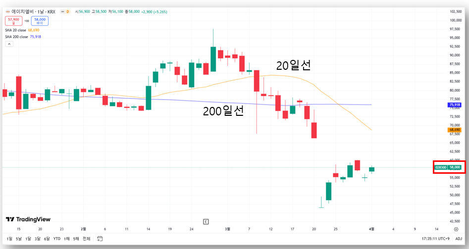 2. HLB 차트 분석 – 기술적 반등 시그널?