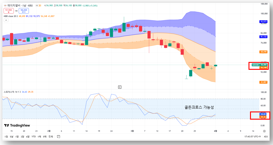 - 스토캐스틱 34.43: 과매도 구간 벗어나며 골든크로스 가능성