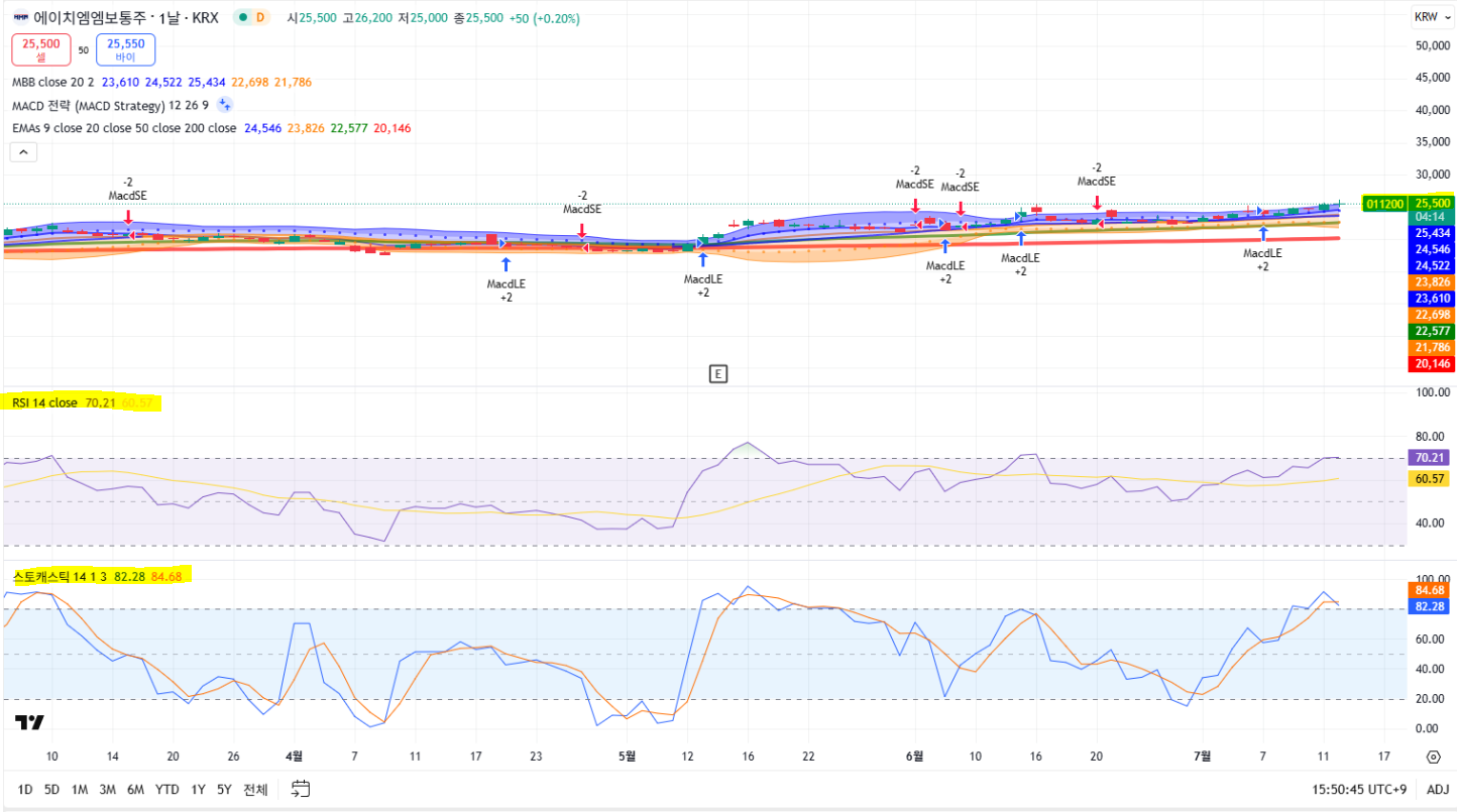 📌 의견: 과매수 구간 진입으로 단기 조정 가능성은 있지만, 추세 자체는 강세