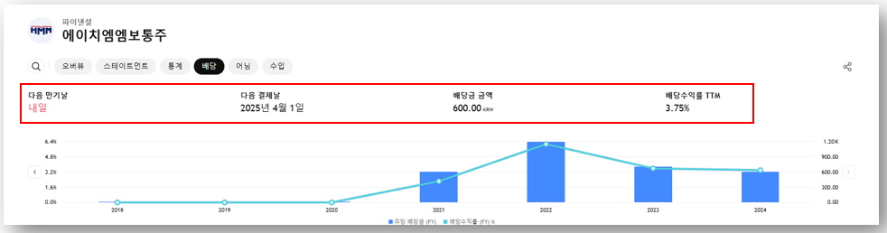 3. HMM 배당금 정보 및 배당 수익률
