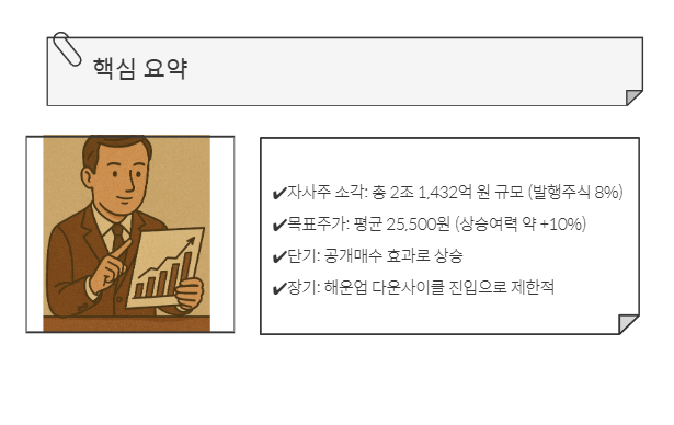 - 자사주 소각: 총 2조 1,432억 원 규모 (발행주식 8%)