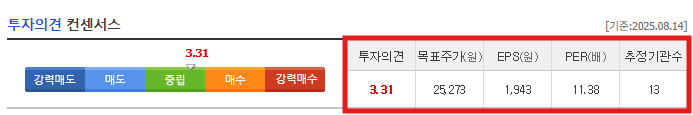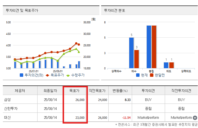 - 목표주가: 평균 25,500원 (상승여력 약 +10%)