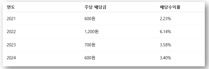 🔍 최근 3년간 배당 추이는 안정적이며, 보수적이지만 지속 가능한 수준의 배당 정책을 유지하고 있습니다.