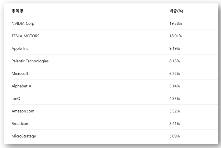 ☝ Palantir, IonQ, NuScale 등 차세대 기술주까지 포함되어 있다는 점이 차별점!