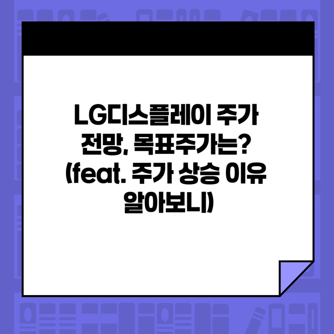 이번 포스팅에서는 LG디스플레이의 주가 상승 이유, 기술적 분석, 목표주가, 향후 전망까지 종합적으로 정리할테니 투자에 참고해주세요!