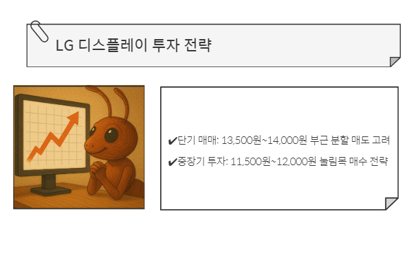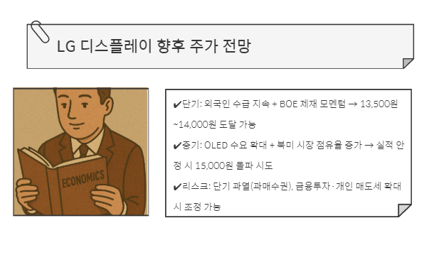 - 중기: OLED 수요 확대 + 북미 시장 점유율 증가 → 실적 안정 시 15,000원 돌파 시도