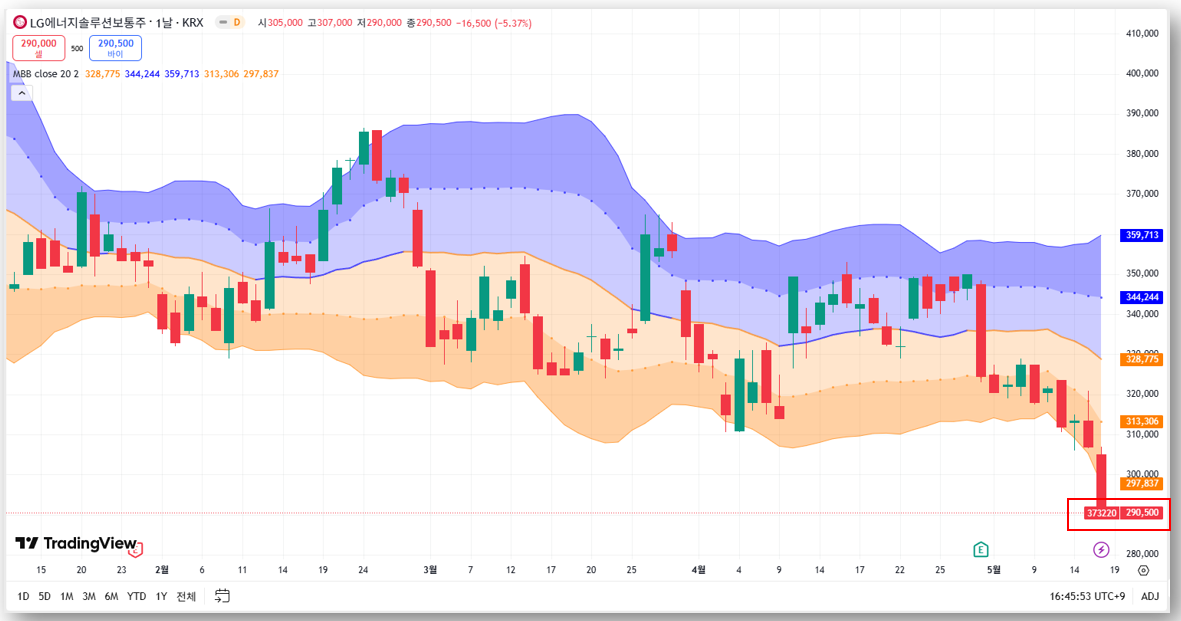 2025년 5월 16일, LG에너지솔루션 주가는 29만5000원까지 하락는데요, 2022년 상장 이후 처음으로 공모가(30만원)를 하회했습니다. 이는 투자 심리 위축의 결정적 신호로 해석됩니다.