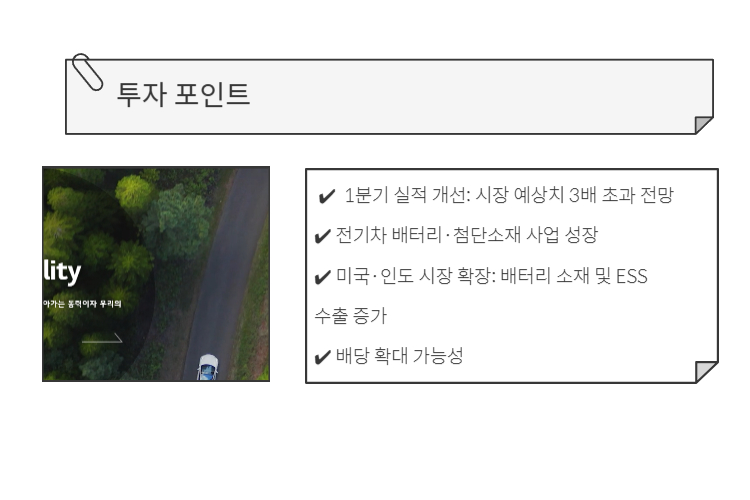 ✔ 미국·인도 시장 확장: 배터리 소재 및 ESS 수출 증가