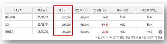 ➡ 평균 목표주가 303,000원 (현재 주가 대비 +17.9% 상승 여력)