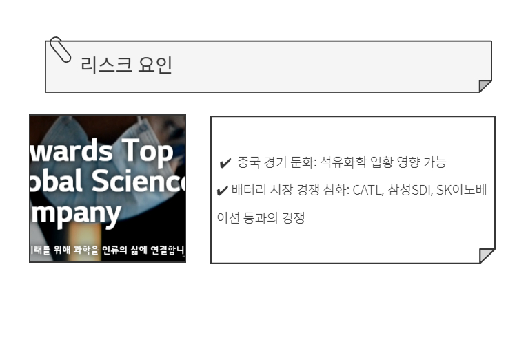 - 배터리, 첨단소재 사업 성장 기대: 전기차 및 에너지저장장치(ESS) 수요 증가