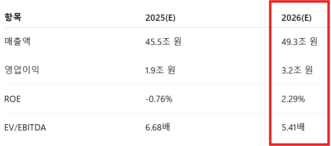 - 2026년 예상 매출 49.3조원, 영업이익 3.2조원