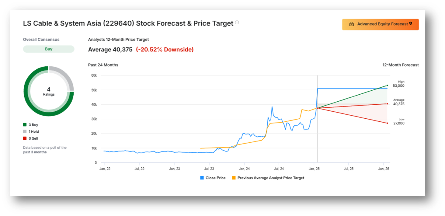 LS 에코에너지는 애널리스트로부터 매수 추천을 받고 있는데요, 최근 3개월 동안 분석된 4개의 투자 의견 중 3개는 매수, 1개는 보유 의견을 제시했는데요,