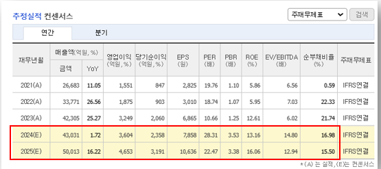 - 대신증권의 분석에 따르면 2024년 LS ELECTRIC의 매출액은 4조 2,900억 원(전년 대비 +2%), 영업이익은 3,663억 원(전년 대비 +13%)으로 예상됩니다.