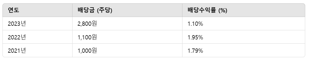- 2023년 대비 소폭 증가하며 꾸준한 배당 지급을 유지하고 있습니다.
